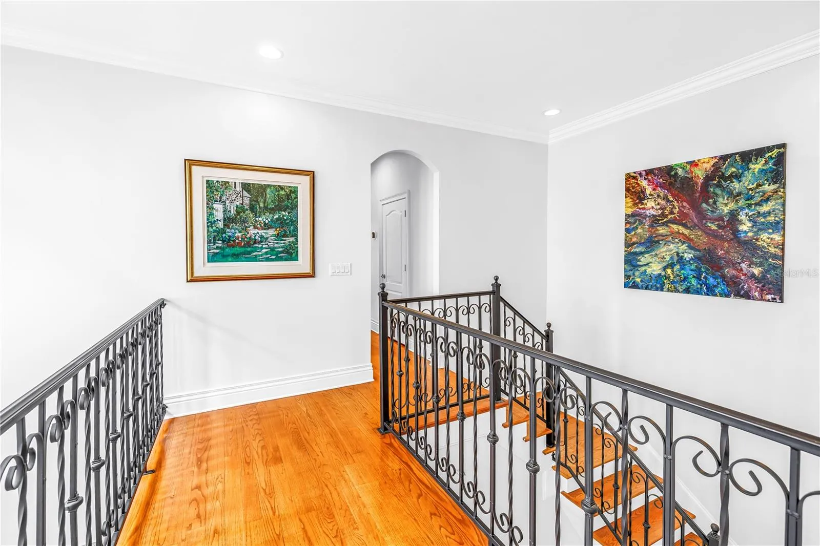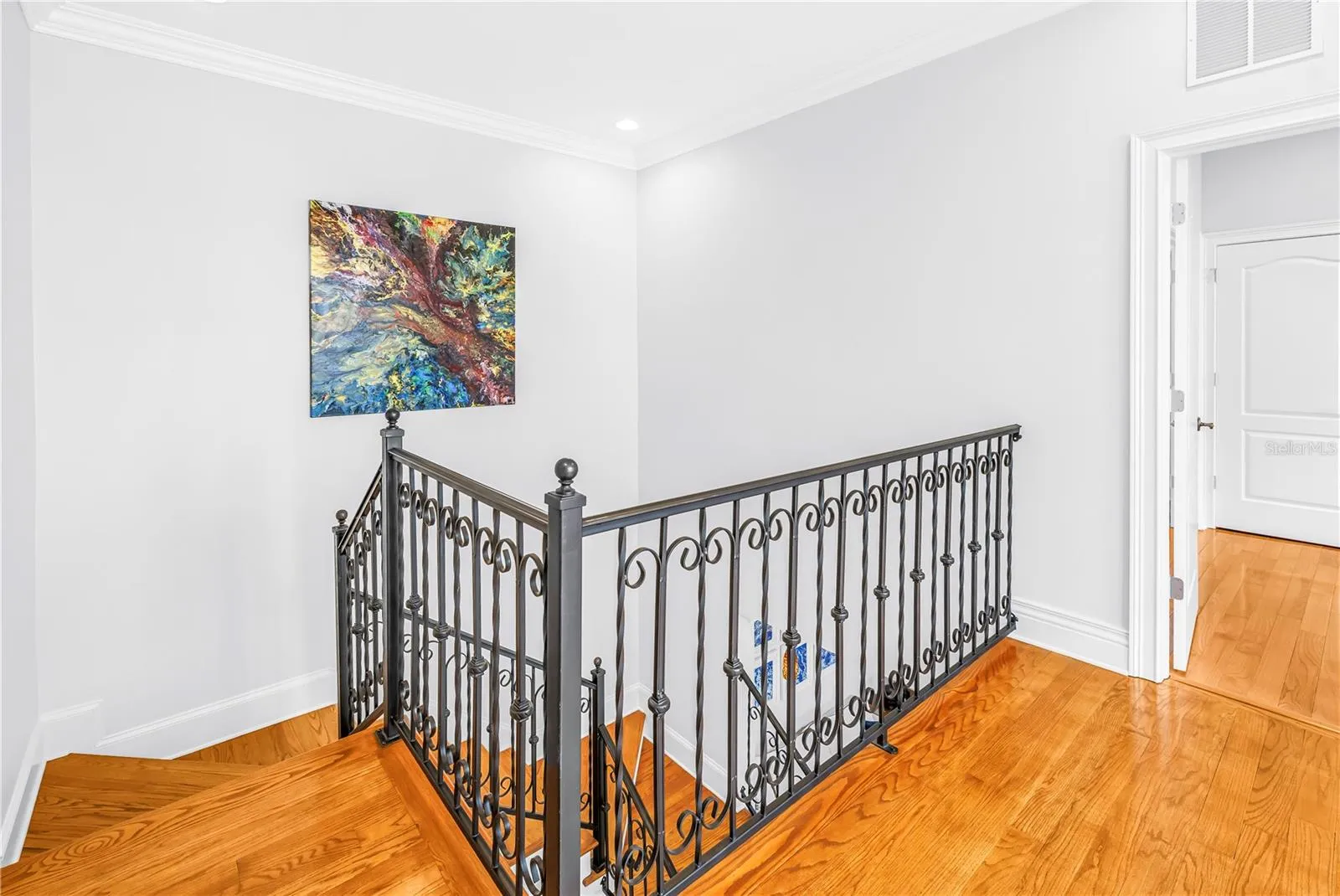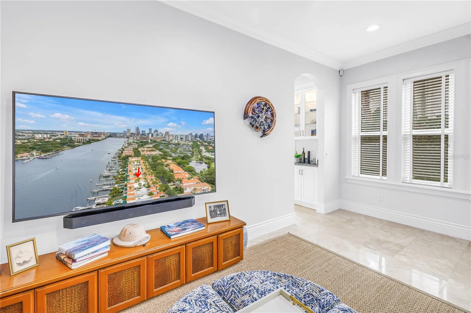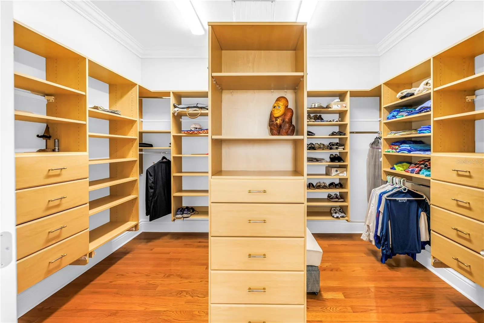 • Luxurious Primary Suite — Second-floor primary bedroom with spa-like bath and generous walk-in closet a well as a large balcony overlooking the pool and water.