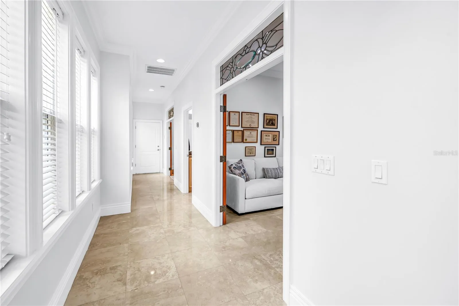 • Additional Living Spaces — Dedicated home office with custom built-ins, formal dining room, and multiple living areas.