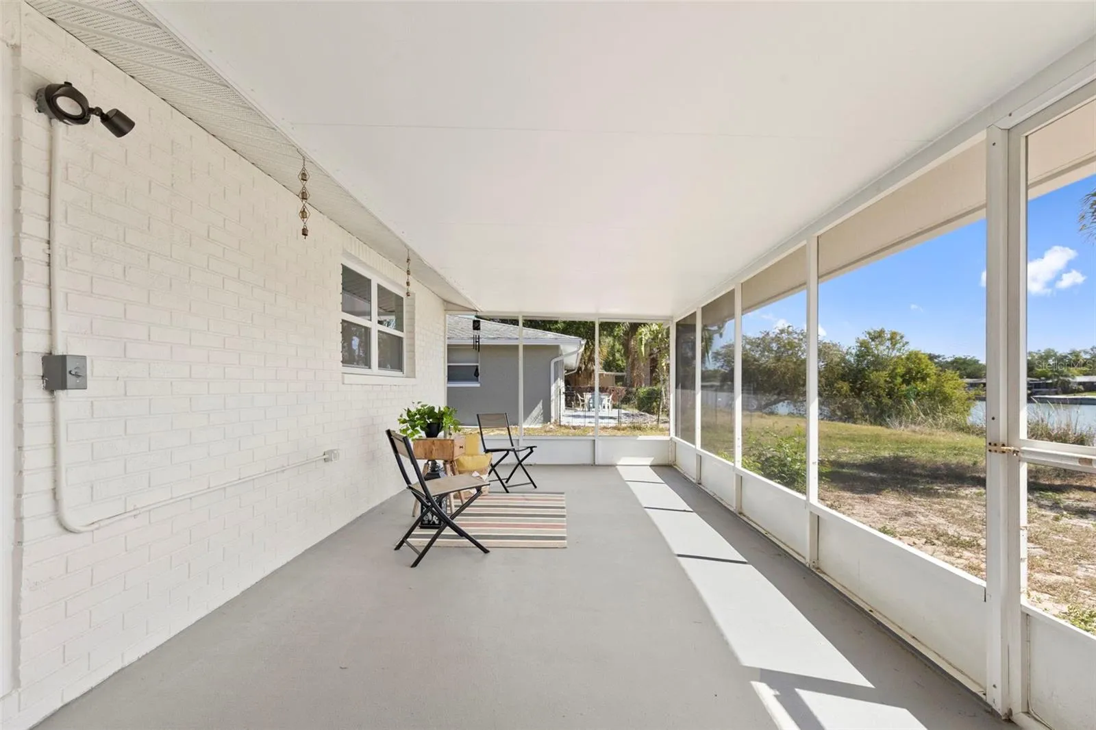Step outside to a huge enclosed Florida room, perfect for relaxing or entertaining while enjoying serene pond views. The backyard offers a tranquil setting with a large concrete dock, ideal for fishing, unwinding, or simply taking in the peaceful waterfront scenery.