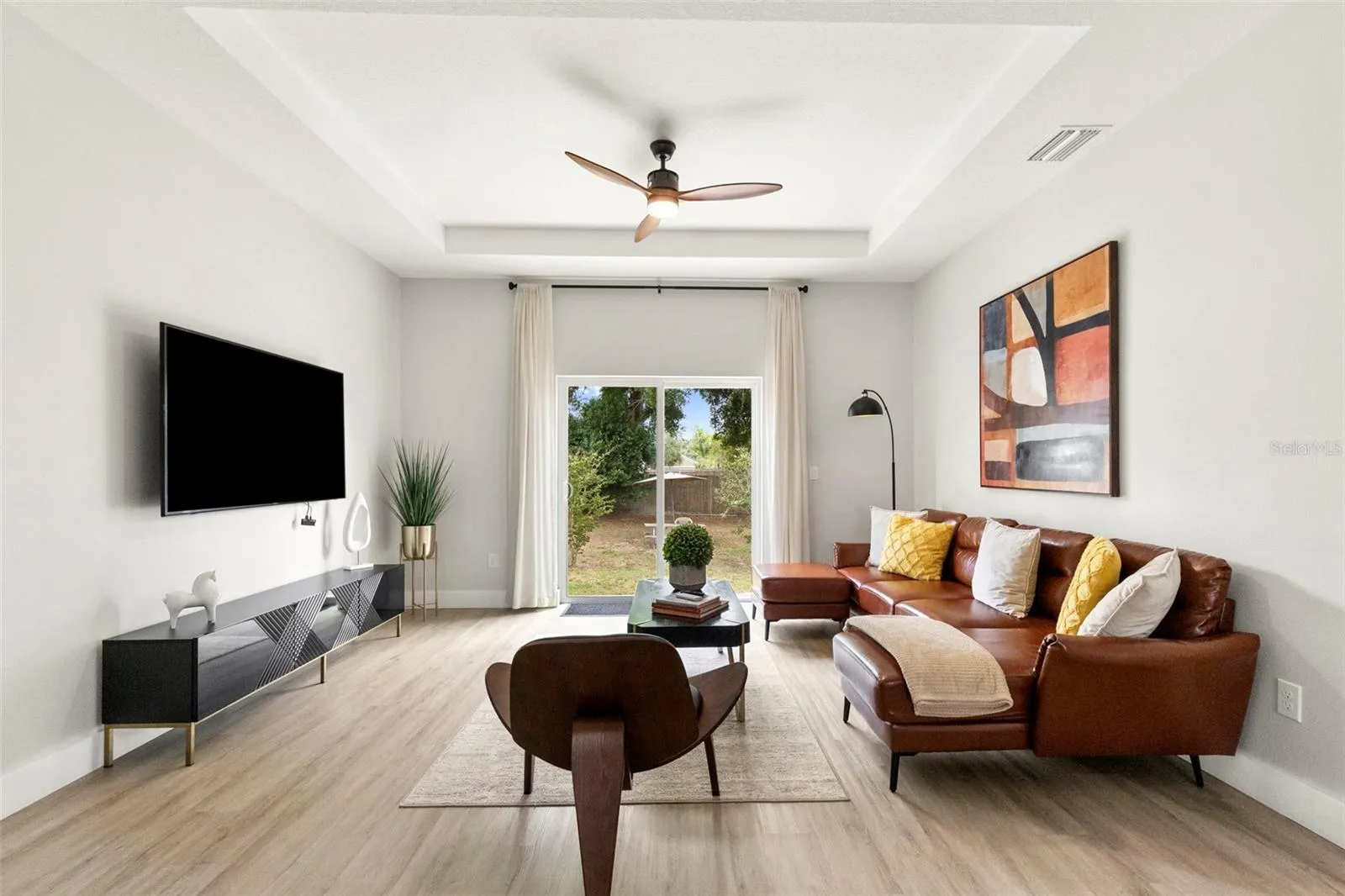 Enjoy laminate flooring throughout, soaring high ceilings, and an abundance of natural light that enhances the home’s clean, modern aesthetic. Step outside to a huge fenced backyard, offering endless possibilities for outdoor living, entertaining, or future enhancements to truly embrace the Florida lifestyle. Covered parking adds convenience and protection year-round.