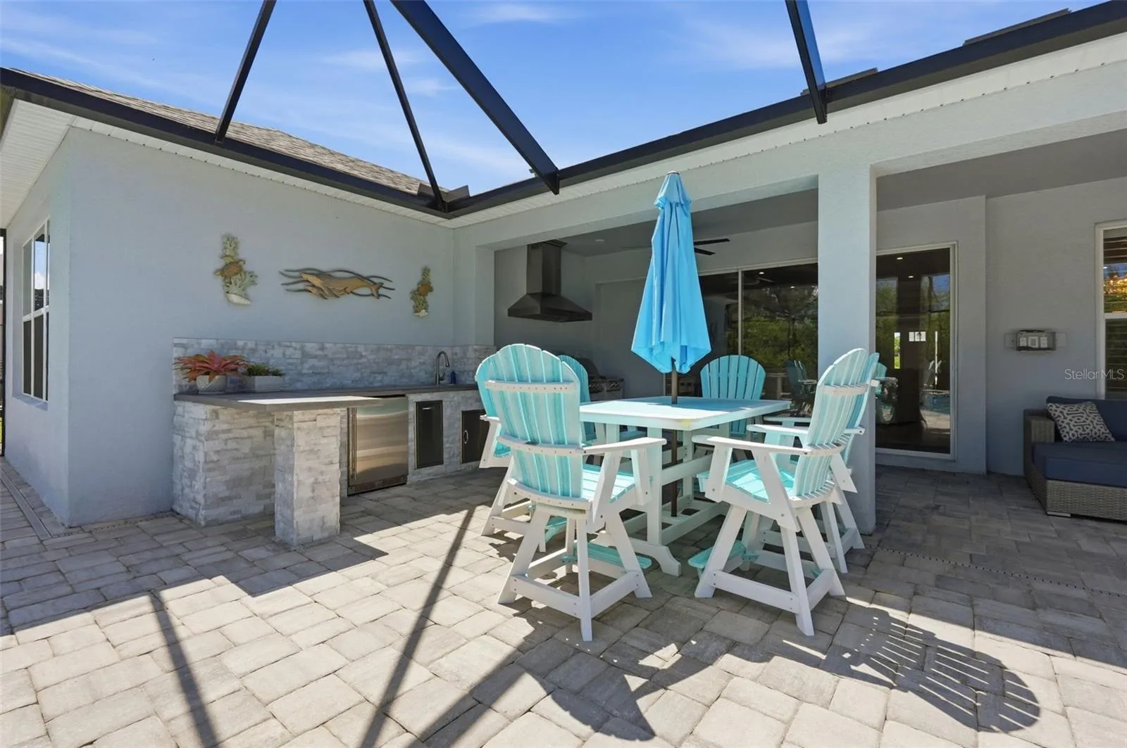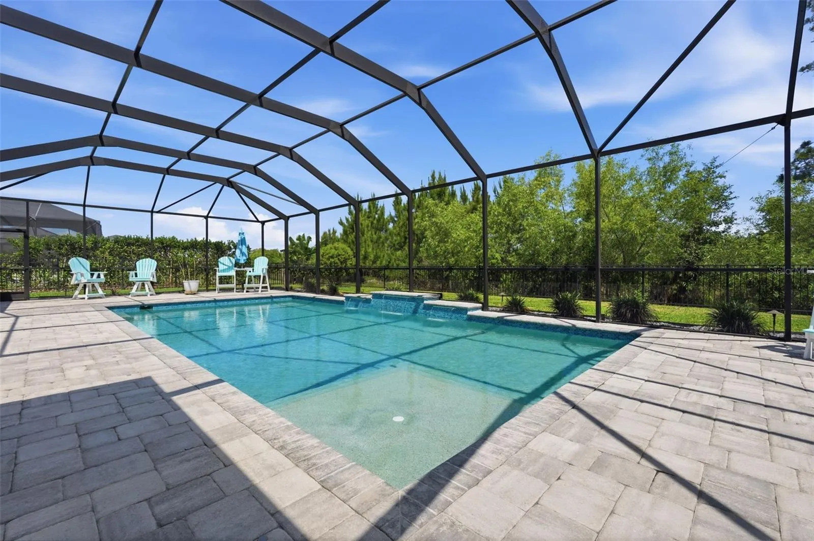 The luxury continues outdoors, where privacy reigns supreme. Situated on a premium lot with no rear neighbors, the backyard is a total sanctuary. You can relax in the sparkling pool housed under a spacious, screened-in lanai or entertain at the professional built-in summer kitchen while enjoying peaceful, unobstructed views.