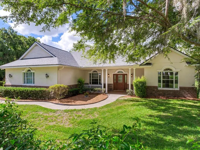 This beautifully landscaped 3-bedroom, 3-bathroom residence boasts a split floor plan and an inviting lanai with an in-ground pool. As you approach, a covered entryway with double doors, a transom window, and a tile floor welcomes you in, setting the tone for the thoughtful architectural design that allows for ample natural light throughout.