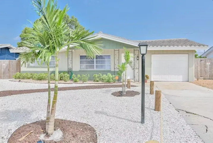 BEST DEAL IN PINELLAS COUNTY! JUST REDUCED! Beautiful and affordable just steps away from the PINELLAS TRAIL! This residence features 881 sq ft of living space, 2 bedrooms, 1 bathroom, a screened porch with hot tub, and a 1 car garage! Arrive to gorgeous CURB APPEAL with an oversized driveway! The spacious living/dining room welcomes you with beautiful terrazzo flooring that runs throughout with n