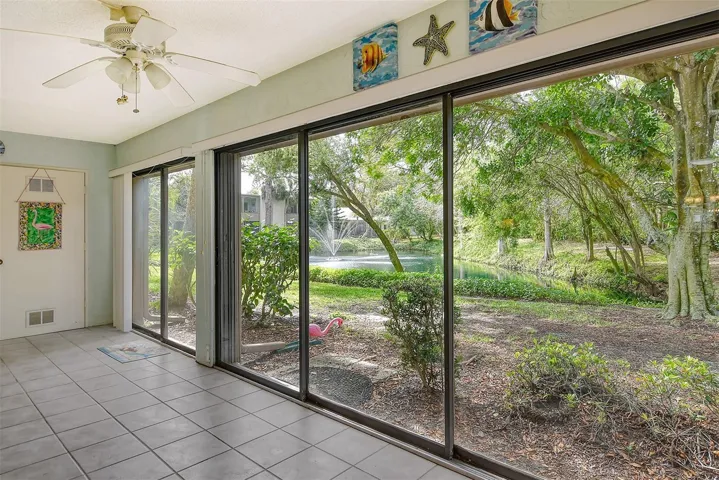 Active 55+ No Pets community. Available for short term or long-term lease, this fully furnished ground floor unit is in move-in condition. The owners have installed hurricane shutters in the bedroom and living room to screened porch. The bedroom window and porch screen enclosure have been replaced.