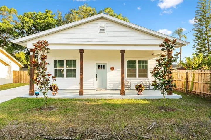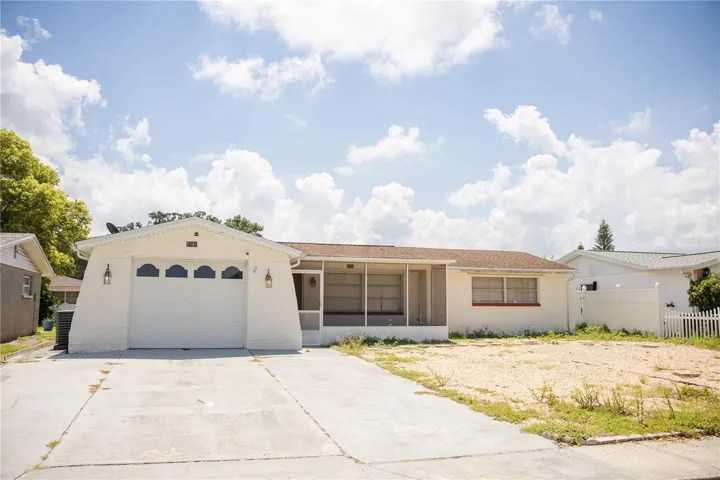 This impressive Oldsmar bungalow has distinctive curb appeal and charm with an oversized paver driveway, 3 bedrooms, 2 baths and a large tropical wonderland backyard setting for the entire family. Laminate floors throughout; new lights fixtures; ceiling fans throughout. Open floor plan with 12.8 x 18.7 living room featuring shiplap accent wall adjoining 9.9 x 6.8 dining area and 9.9 x 9.